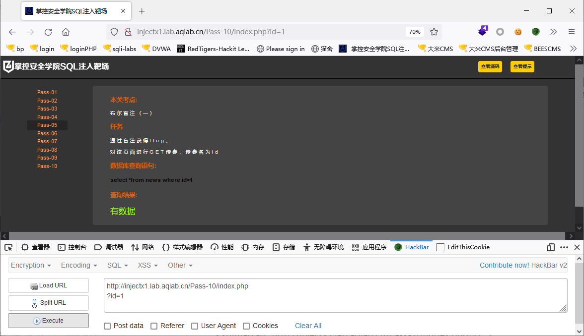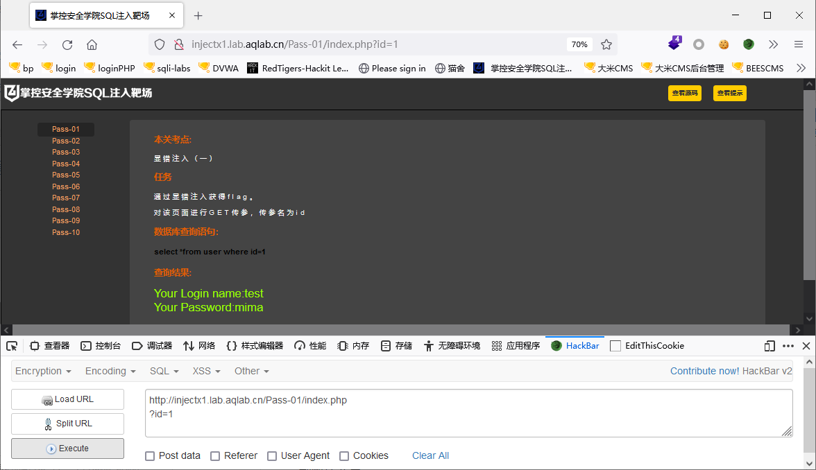http://injectx1.lab.aqlab.cn/Pass-01/index.php?id=1