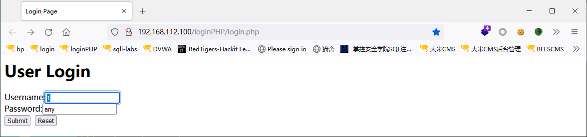 http://192.168.112.100/DVWA-master/vulnerabilities/sqli/?id=1&Submit=Submit