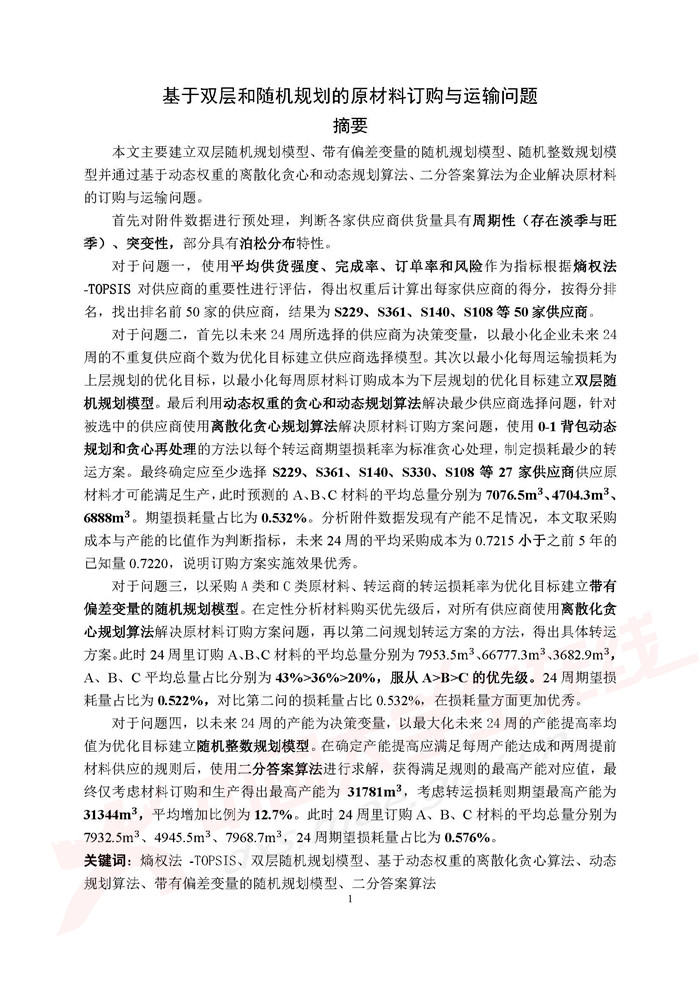 1 美国数学建模竞赛