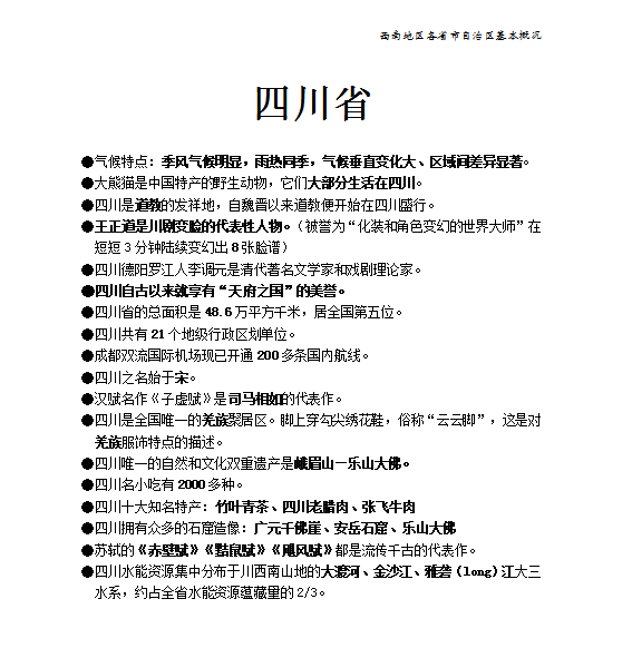 (二)读一读:认读四川旅游资源分布图,熟知该地区的主要旅游景点。