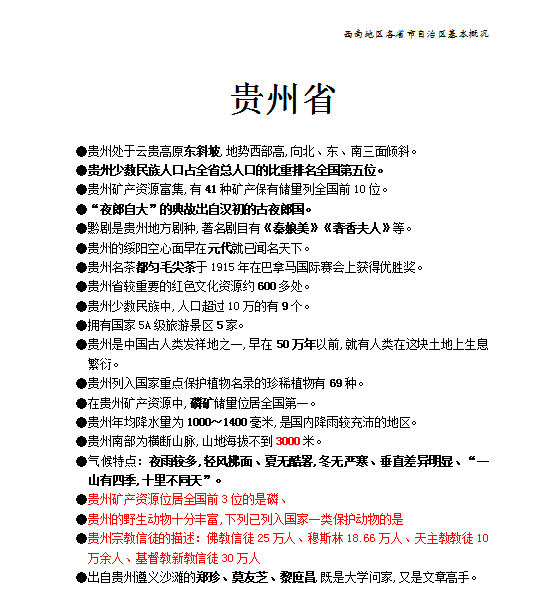 (二)读一读:认读贵州省旅游资源分布图,熟知该地区的主要旅游景点。