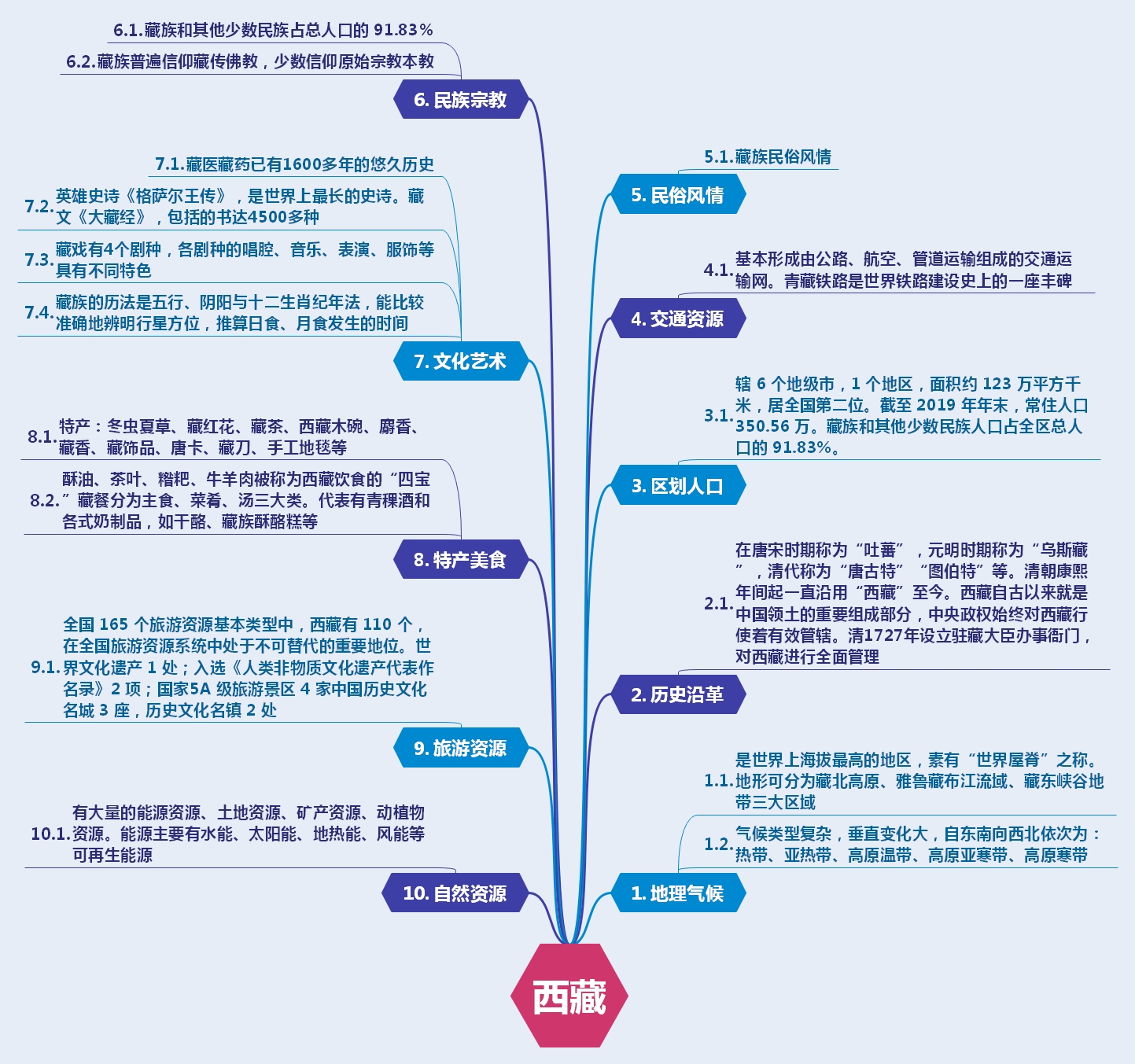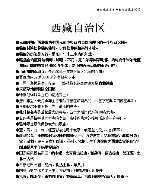 (二)认读西藏自治区旅游资源分布图,熟知该地区的主要旅游景点。
