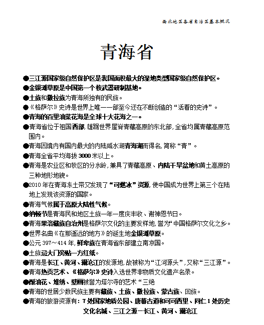 (二)读一读:认读青海省旅游资源分布图,熟知该地区的主要景区景点