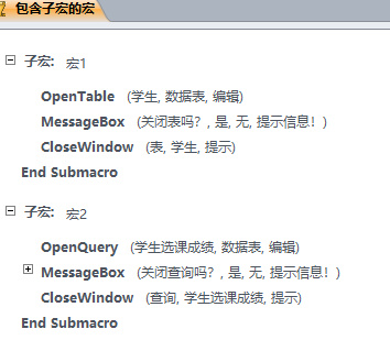 子宏是存储在同一个宏名下的相关宏的组合。如果有许多个宏执行不同的操作,那么也可以将宏建立为不同的子宏,以方便数据库的管理和维护。