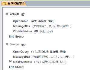 宏组是存储在同一个宏名下的相关宏的组合,它与其它宏一样可在宏窗口中进行设计,并保存在数据库窗口的导航窗格的【宏】组中。如果有许多个宏执行不同的操作,那么可以将宏建立为不同的宏组,以方便数据库的管理和维护。