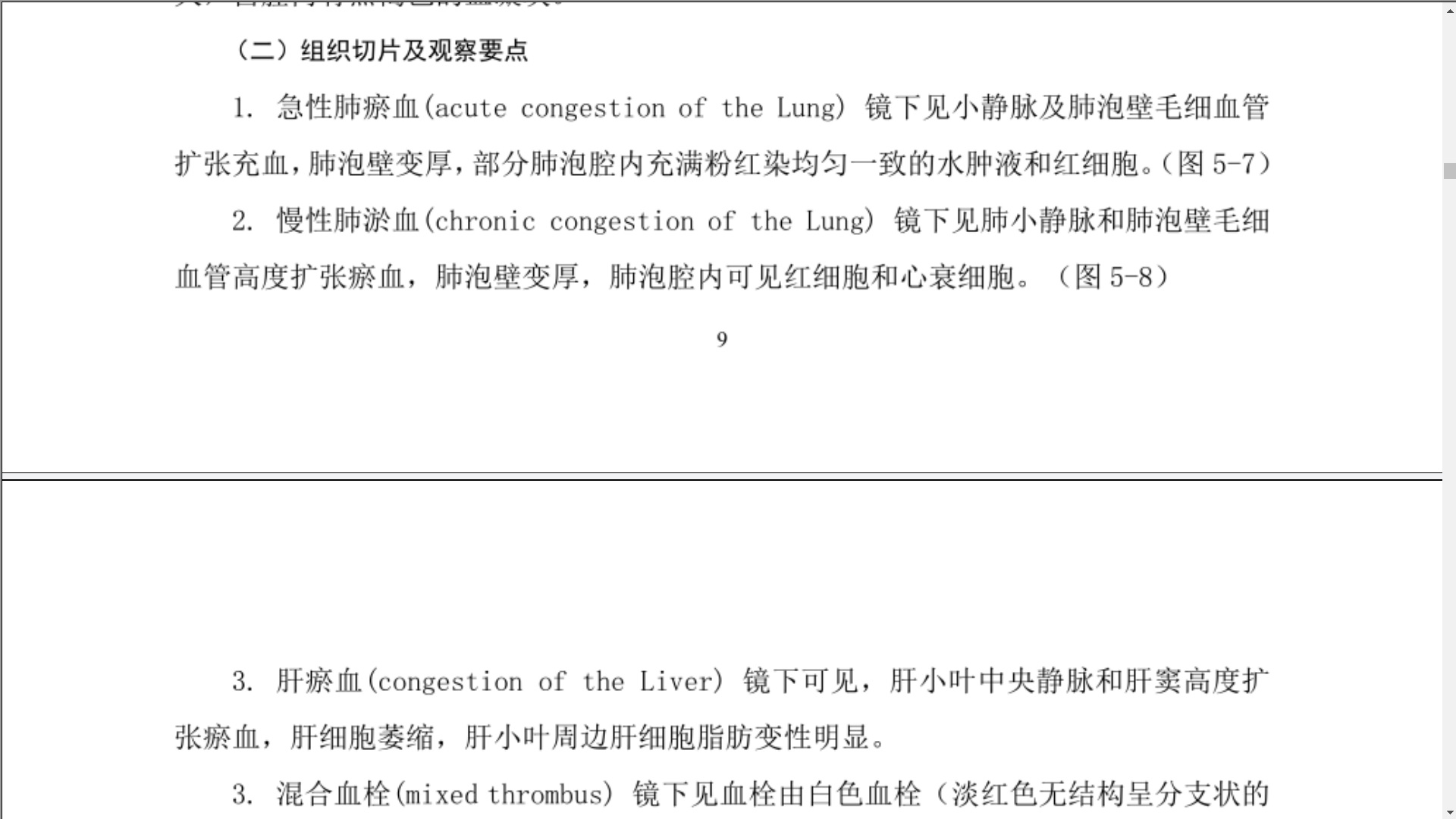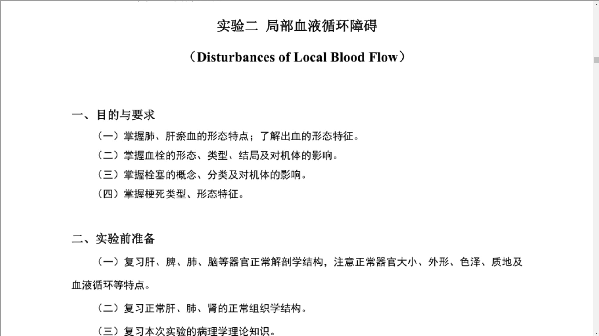 病理学实验第3、4次(共4学时,每次2学时) 局部血液循环障碍