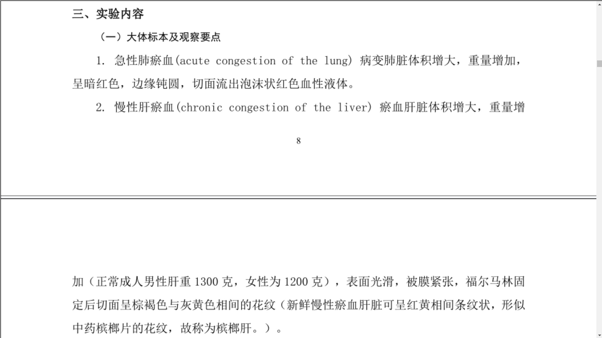 五、 实验报告作业(原计划第三次实验提交):慢性肺淤血。(格式参见学习通实验(病理学)中1.6内的相关内容)。
