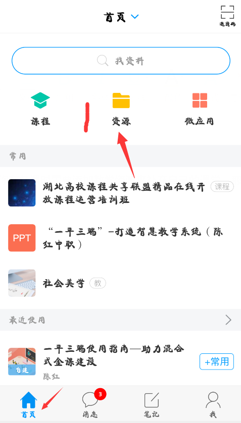 如果在备课时需要添加教学资源来补充自己的课堂,那可以进行如下操作: