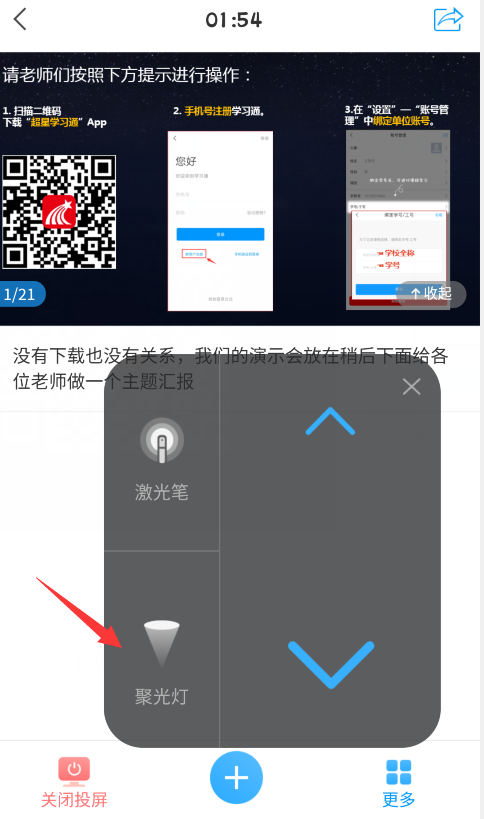 与此同时,在投屏的过程中还可以使用激光笔和聚光灯功能,具体表现如下图: