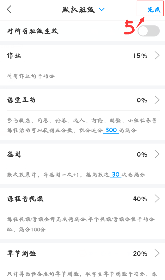 如果想更加准确和高效的对学生做形成性评价,就可以通过我们的手机端对学生的学习权重进行设置,从而更加让学生做出更加科学合理的评价