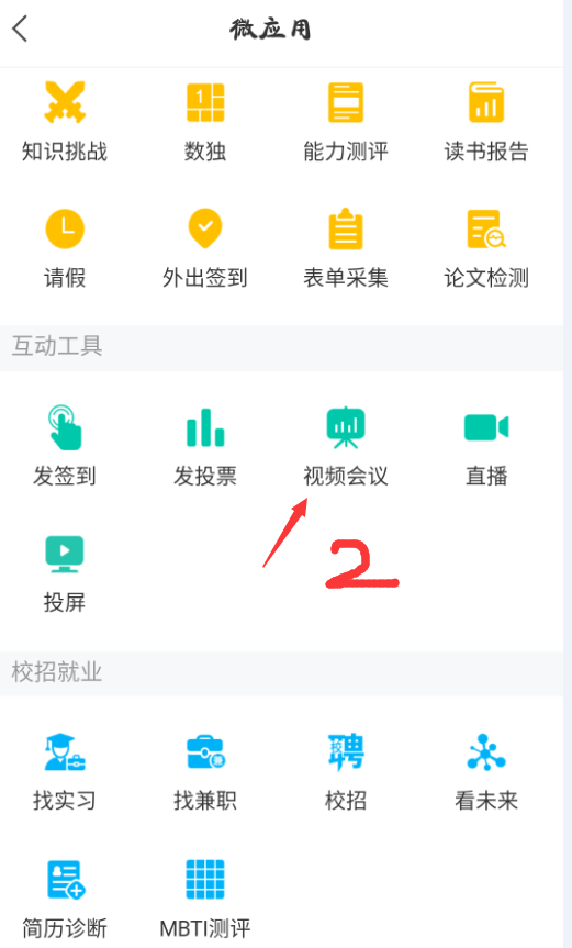 如果我们想和不在一个地区的同事开一个工作小组会议,但学校的硬件设备不是很完善,那么可以直接通过学习通的下面这些操作步骤来进行视频会议: