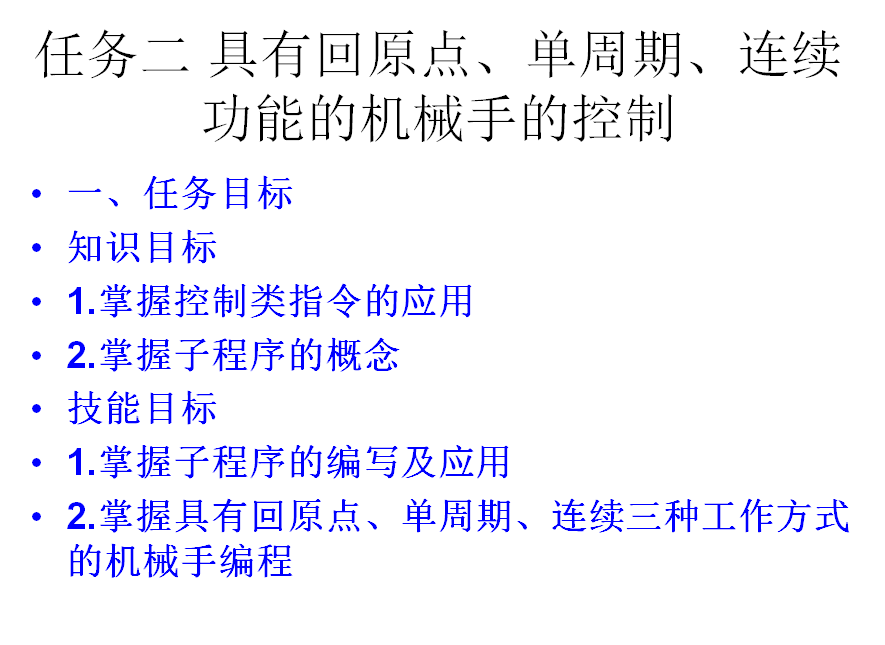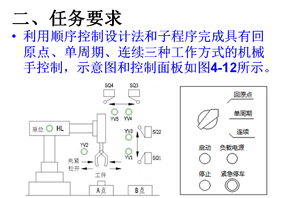 任务二 具有回原点、 单周期、 连续功能的机械手的控制
