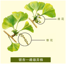 (3)雌雄异株的植物,其雌花和雄花分别长在不同的植株。如银杏