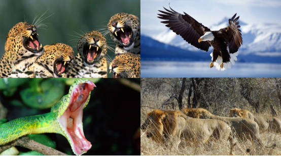 (1)捕食者具有利用其猎物的适应性:比如锐齿、利爪、尖喙、毒牙等作为捕猎工具,诱饵追击、集体围猎。
