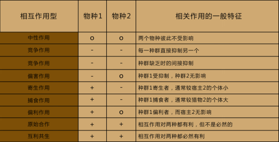 种间关系有哪些相互作用的类型呢?我们根据两个物种间的关系,把种间相互作用分为以下类型: