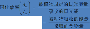 同化效率是指被植物吸收的日光能中被光合作用所固定的能量比例,或被动物摄食的能量中被同化了的能量比例。
