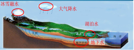 (4)进入河流、湖、海的水,最终通过蒸发返回大气。