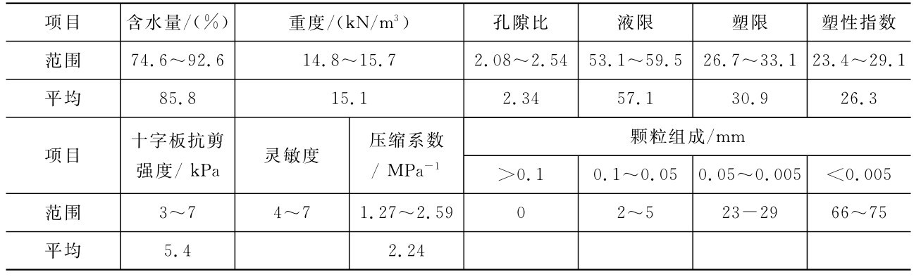 表10-9 深圳机场淤泥的物理力学指标