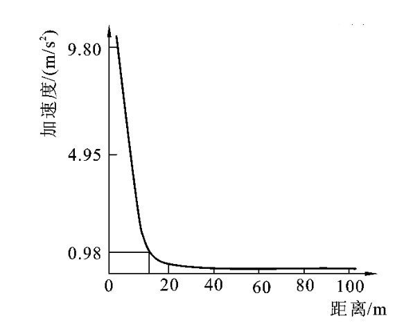 图10-22 振动加速度与水平距离关系曲线