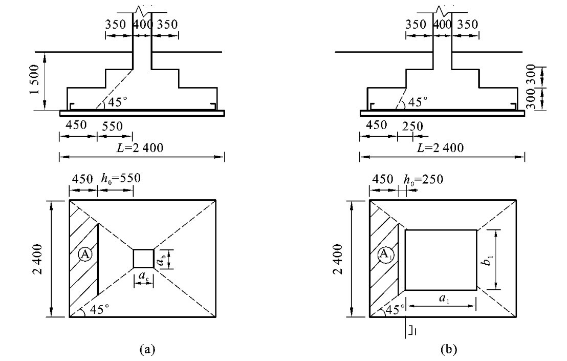 设计时先假设一个基础高度h,然后按下列公式验算冲切承载力。