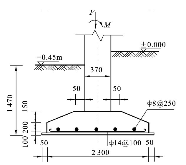 初选基础高度h=350mm>b/8=287mm,边缘厚度取200mm。垫层为100厚C10混凝土,基础保护层厚度取40mm,h0=(350-40)mm=310mm。计算截面选在墙边缘,则