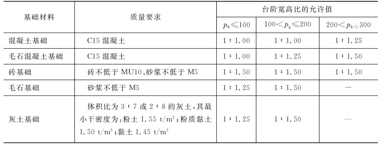 注:(1)pk为荷载效应标准组合时基础底面处的平均压力值(kPa);