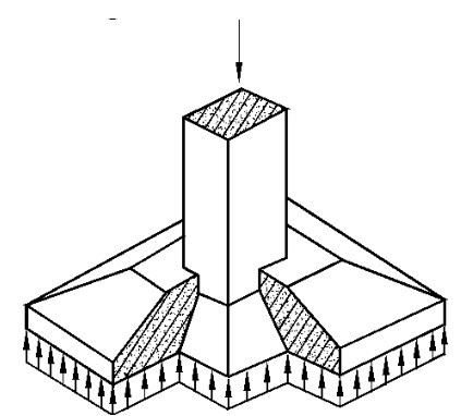 基础高度及变阶处高度,应通过截面抗剪强度及抗冲切验算。对独立基础而言,其抗剪强度一般能满足要求,故主要根据冲切验算确定基础高度。从柱子周边起,沿45°斜面是抗冲切面,形成如图7-21中虚线所示的冲切角锥体。