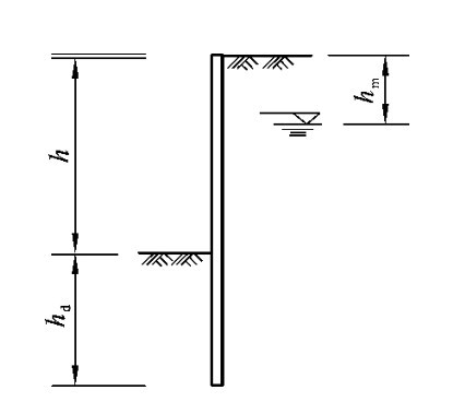 广义上讲,一切没有支撑和锚杆的支护结构均可归属悬臂式支护结构,但这里仅指没有内撑和锚拉的板桩墙、排桩墙和地下连续墙支护结构(见图9-2)。悬臂式支护结构依靠其入土深度和抗弯能力来维持坑壁稳定和结构的安全。由于悬臂式支护结构的水平位移是深度的五次方,所以它对开挖深度很敏感,容易产生较大的变形,只适用于土质较好、开挖深度较浅的基坑工程。