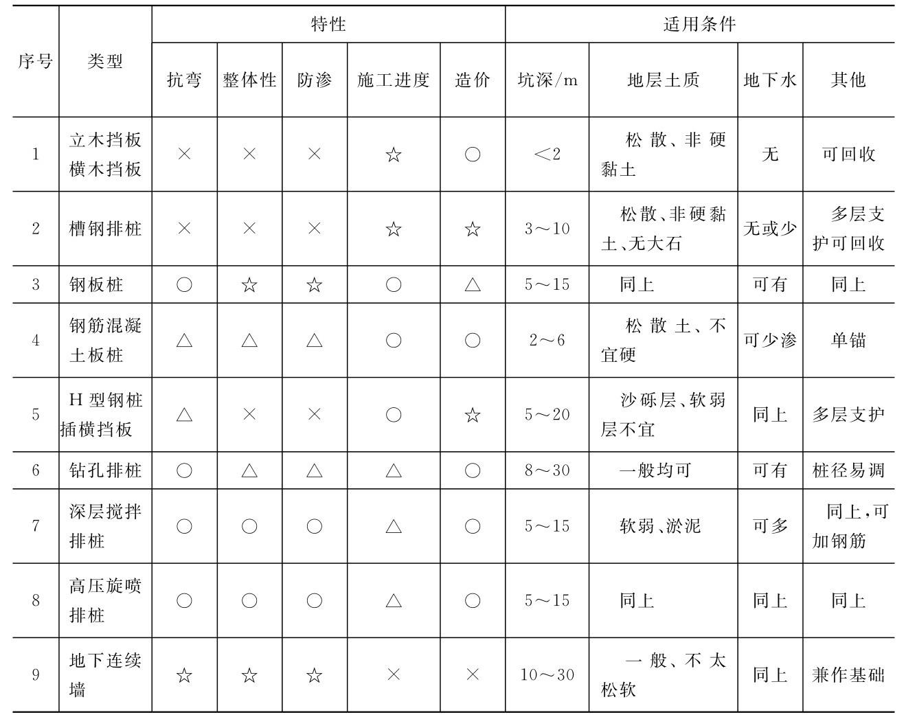 (1)桩墙 主要有板桩、板桩墙、钻孔灌注桩、拌和排桩及地下连续墙等方式。