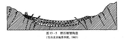 在新近纪和第四纪沉积盆地区,因受新构造运动的挤压作用,常沿盆地边部产生一系列挤压小褶皱和逆断层(compressive fold & rift structure )(图13-5)。发生在新近系和第四系中的逆断层规模较小,通常受盆地边缘断裂的影响。褶皱变形比较弱,多为宽缓、转折端圆滑的褶皱。