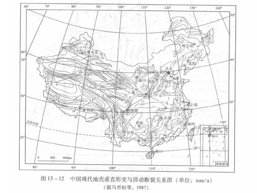 通过大地测量,编制的地形形变和地壳形变图很好地显示了地形形变与活动断裂的关系,两者具有较好的一致性(图13-12)。