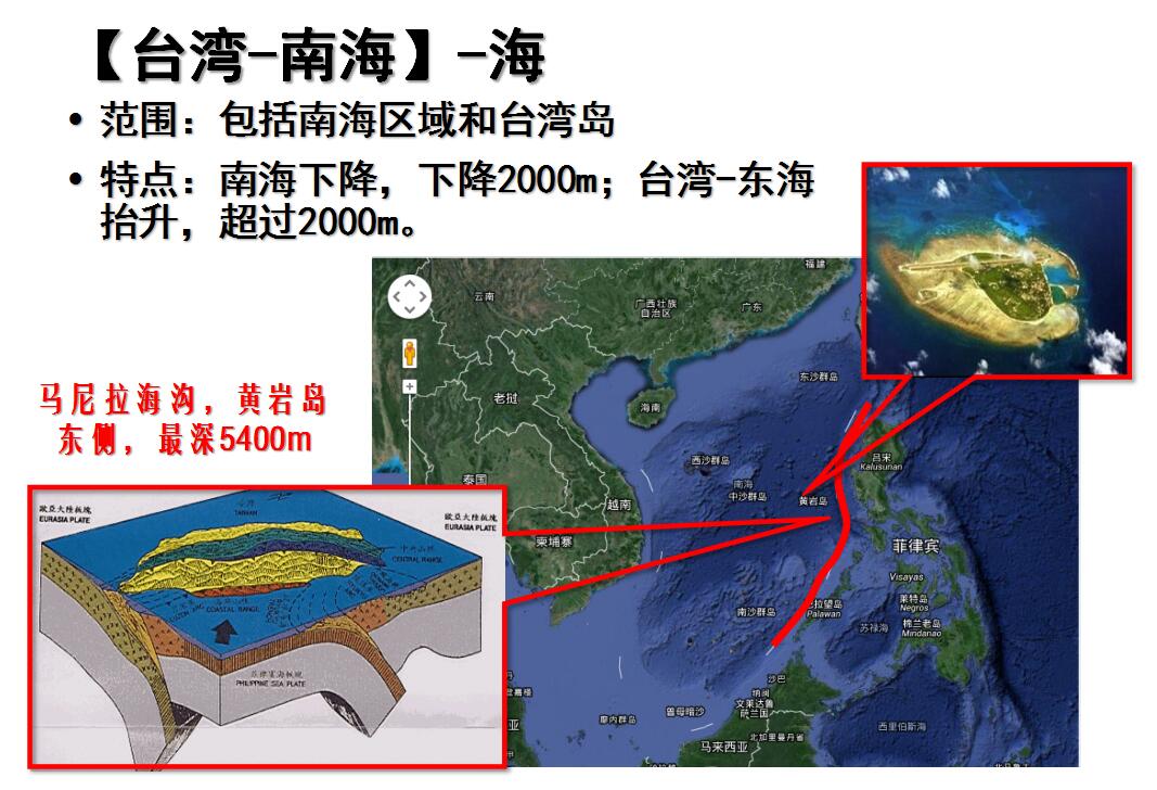 本区的范围是中国南海海域和台湾岛,包括台湾海峡及台湾北部冲绳海槽西坡以西的东海大陆架,总面积约250 x 104 km2。内部又以台湾海峡南口的北西向断裂为界分为南部的南海亚区和北部的台湾一东海亚区。南海亚区的东、南、西面分别同菲律宾群岛、加里曼丹岛和中南半岛相邻,北面以南海北部陆缘断裂与华南新构造区为界。