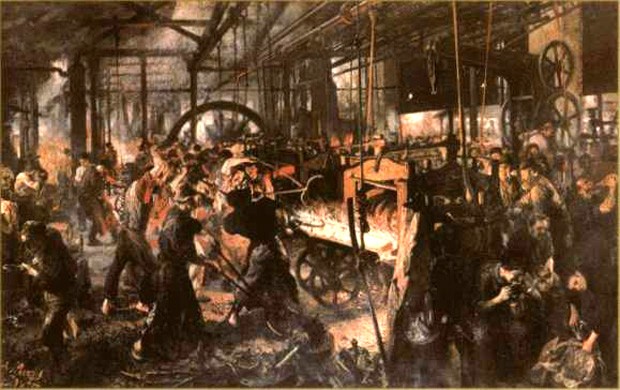 1. 试用社会学分析法的美术鉴赏方法分析现实主义画家门采尔的代表作品《轧铁工厂》。