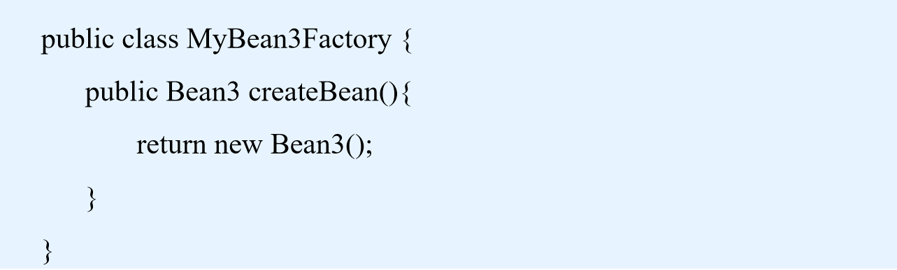 <bean id="bean3" factory-bean = "bean3Factory" factory-method = "createBean"></bean>