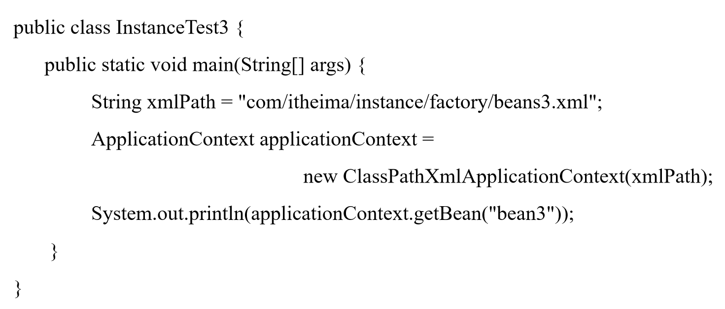 <bean id="bean3Factory" class="com.itheima.instanc.factory.Bean3Factory" />