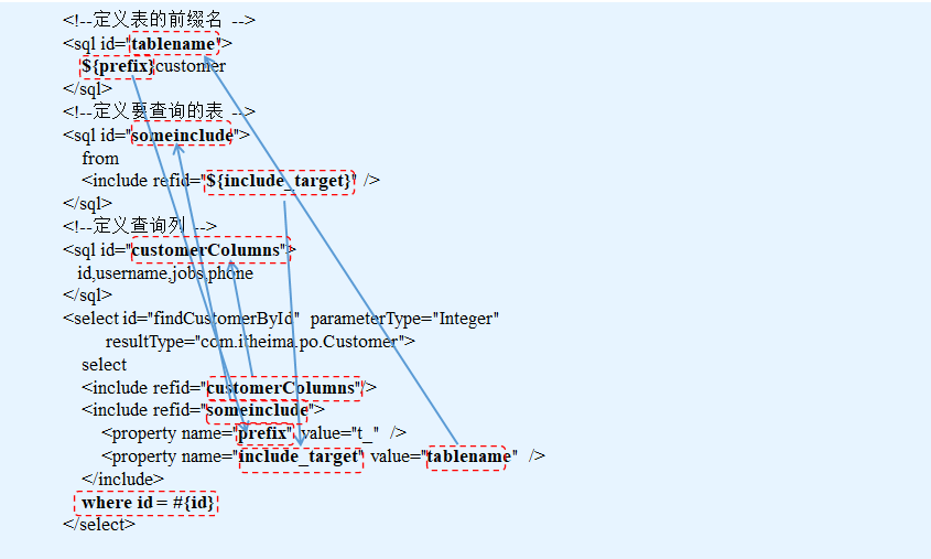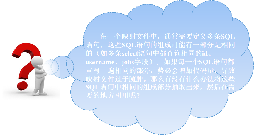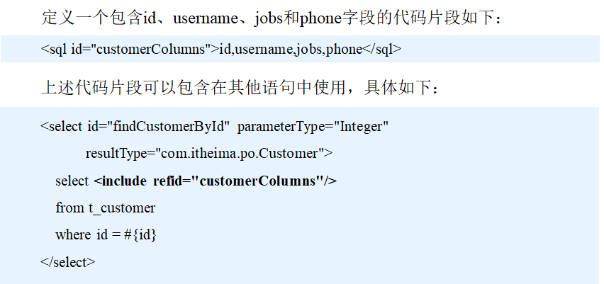 <sql>元素的作用就是定义可重用的SQL代码片段,然后在其他语句中引用这一代码片段。