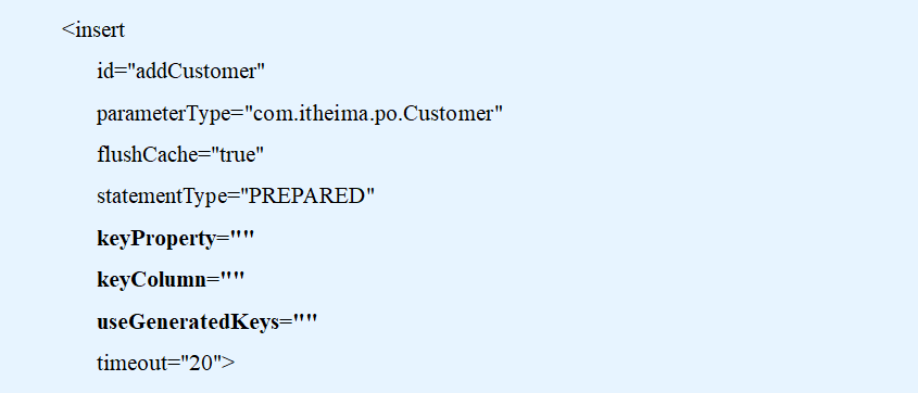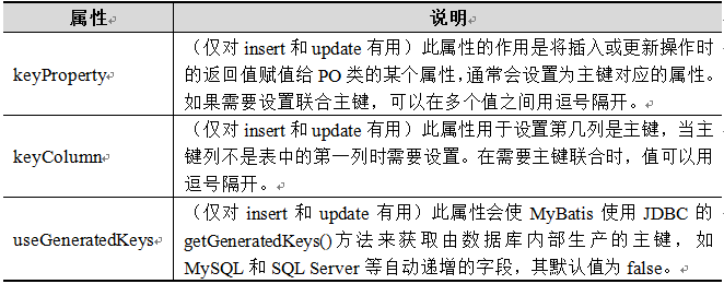执行插入操作后,很多时候需要返回插入成功的数据生成的主键值,此时就可以通过上面讲解的3个属性来实现。