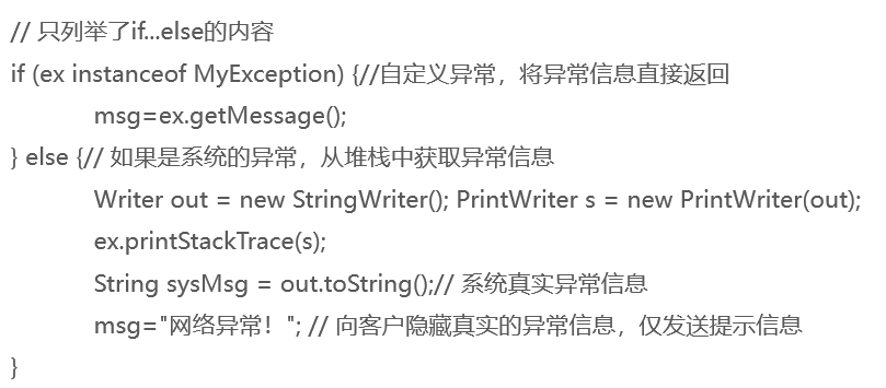 从图中所示的页面显示效果可以得出,如果Handler执行时抛出的是自定义异常,异常处理页面打印自定义异常的异常信息;如果Handler执行时抛出的是系统自带的异常,异常处理页面统一打印“网络异常”。异常处理器对不同类型的异常进行区别处理。
