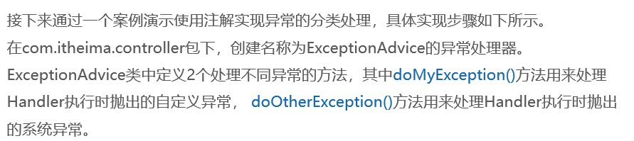 从步骤2和步骤3所示的页面显示效果可以得出,使用@ControllerAdvice注解和@ExceptionHandler注解实现的异常分类处理,效果和上一节使用自定义异常处理器一样。