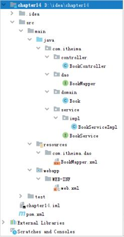 接下来 ,根据14.1.1中的整合思路搭建SSM框架整合的项目基础结构 ,具体如下所示。