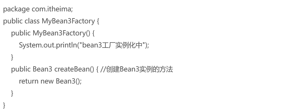下面通过一个案例演示如何使用实例工厂方式实例化Bean。在chapter07项目的com.itheima包中创建Bean3类,该类与Bean1一样,不需添加任何方法。