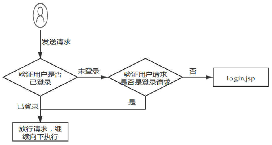 为了避免此种情况的发生,提升系统的安全性,可以创建一个拦截器来拦截所有请求。当用户处于登录状态时,直接放行该用户的请求;如果用户没有登录,但是访问的是登录相关的请求,也放行;否则将请求转发到登录页面,并提示用户登录。