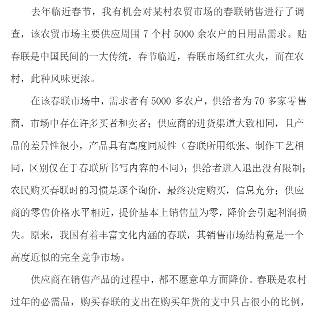 (2)完全竞争市场具备什么特点?在春联市场上有什么体现?