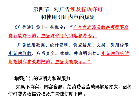 • 6.4 对广告涉及行政许可 和使用引证内容的规定